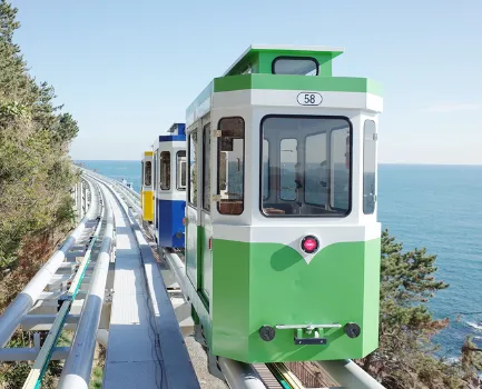 아름다운 동부산의 수려한 해안 절경을 감상하면서 해운대 미포에서 청사포를 거쳐 송정까지 운행하는 국내 최초로 도입된 배터리 충전 방식의 친환경 관광열차입니다.